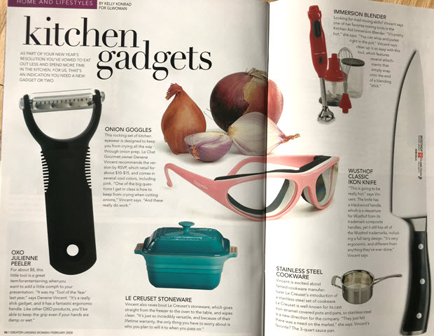 This rocking set of kitchen eyewear is designed to keep you from crying all the way through onion prep. Le Chat Gourmet owner Denene Vincent recommends the version by RSVP, which retail for about $10-$15, and comes in several cool colors, including pink. “One of the big questions I get in class is how to keep from crying when cutting onions,” Vincent says. “And these really do work.”