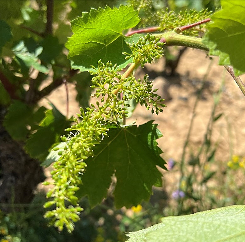 from flowering vines to plants dripping with baby clusters of grapes.
