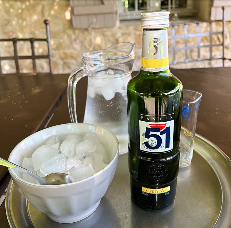 Chef Vincent’s friends Anca and Timo. Glasses of pastis, an anise-flavored aperitif