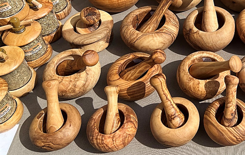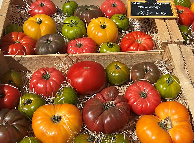 artisan spreads, heirloom tomatoes, olivewood utensils, spices, a kaleidoscope