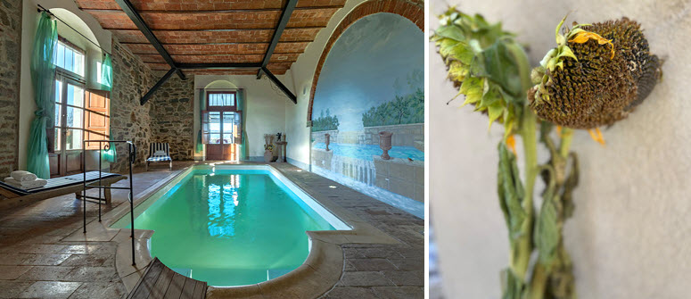 Italian breakfast at the villa. Morning departure to the Etruscan town of Arezzo – enjoy your day exploring as you step back in time, Arezzo is filled with places to discover, from roman ruins, the Medici Fortress to Basilica di San Francesco’s famous frescoes by renaissance painter Piero della Francesca. Stroll along Corso Italia a shoppers delight with shops selling linens, kitchenware, antiques to vintage jewery. A walk around the Piazza Grande reveals artist workshops, quaint cafes, Medieval buildings like the Palazzo Pretorio its façade covered in coats of arms and the Palazzo della Fraternita dei Laici whose bell tower houses one of the rarest astronomical clocks in Europe. Visit some of the best gourmet food shops featuring traditional Tuscan products from artisan pasta, black truffles, aged balsamic vinegars, local honey, porcini mushrooms, specialty dry beans, spices to the infamous garlic della Valdichiana, plus traditional sweet treats like panforte, cantucci and ricciarelli the ‘melt in your mouth’ almond cookies of Siena. Dinner at the villa by Chef Vincent.