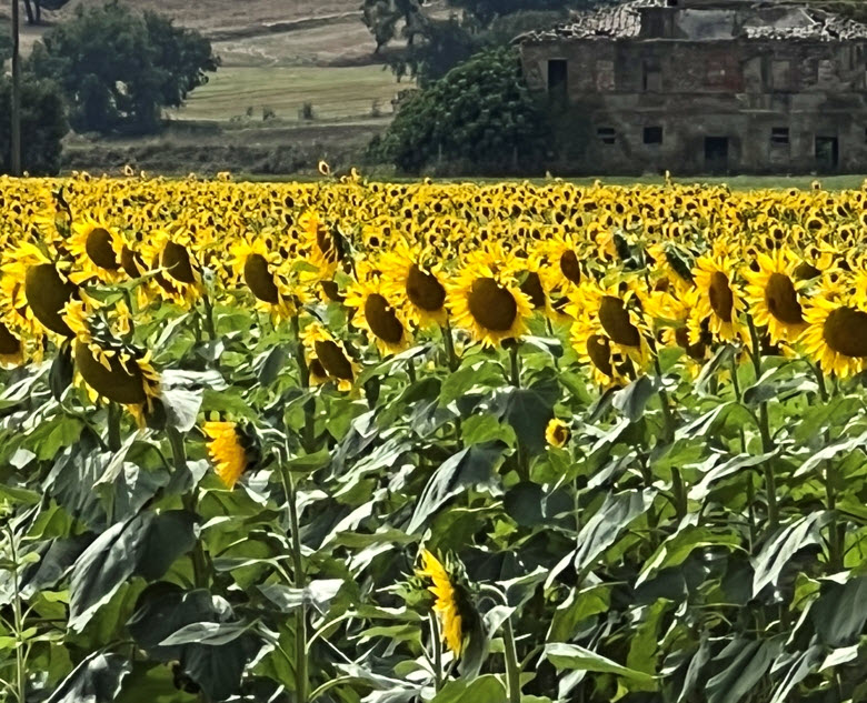 Fields of blazing Sunflowers…welcome us to Tuscany!