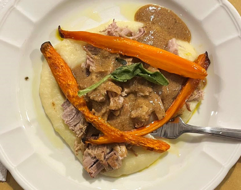 pork in whole milk, served with cauliflower puree, balsamic glazed carrots